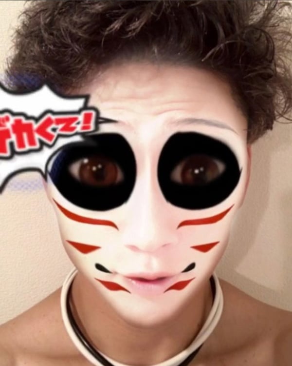 スマートフォンARカメラアプリ「SNOW」にて、ゴールデンボンバーの樽美酒研二(Doramu)の白塗りメイクが施される顔認識スタンプがリリースされた。
