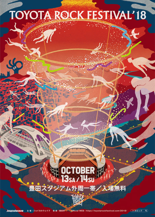10月13、14日に愛知・豊田スタジアム 外周で入場無料の野外フェスティバル「TOYOTA ROCK FESTIVAL 2018」が開催される。
