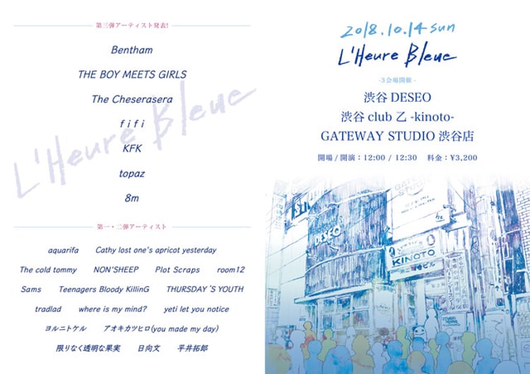 10月14日に東京・SHIBUYA DESEO、渋谷club乙-kinoto-、GATEWAY STUDIO 渋谷店の3カ所で開催されるライブイベント「L'Heure Bleue」の追加出演者が発表された。