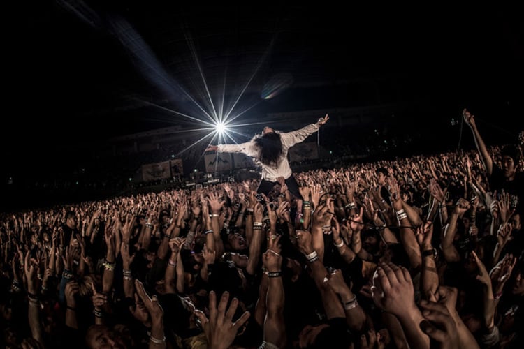 「山人音楽祭」初出演ながら、個人的にはG-FREAK FACTORYとの出会いは15年ほど前だというMONOEYESの細美。彼はこの巡り合わせについて「いろいろやり直せるんだなって思いました」と感慨深く語った。その後バンドが「Two Little Fishes」を演奏すると、ダルマを持ったTOSHI-LOWが突然現れ、コーラスを担当するひと幕も。細美は「『こんな危険なことやってるのにケガ人出ないの?』っていうの、俺たちの得意技じゃん? よろしくお願いします」とパンクシーンへのリスペクトとファンへのメッセージを語り、バンドは「When I Was A King」を届けた。