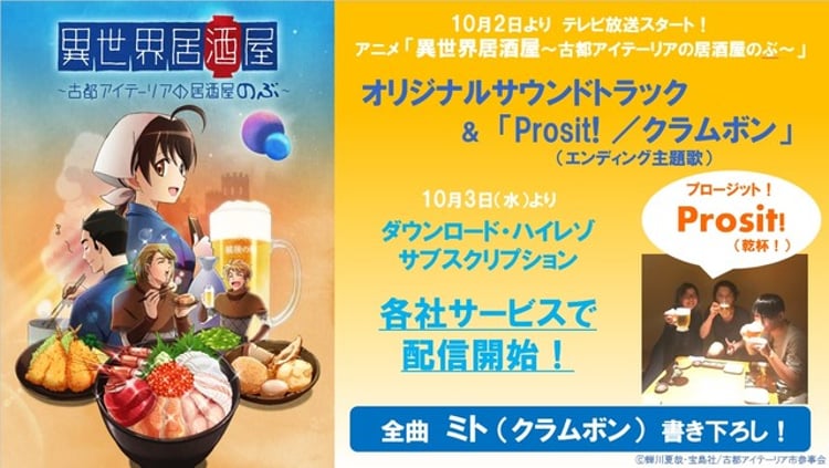 クラムボンのミト(B)が劇伴を手がけるテレビアニメ「異世界居酒屋~古都アイテーリアの居酒屋のぶ~」のオリジナルサウンドトラックが本日10月3日に配信リリースされた。