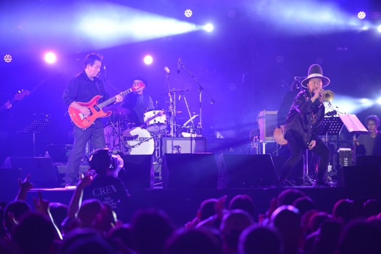 2日間にわたるフェスの大トリを務めたのは、加山雄三率いるTHE King ALL STARS。加山やタブゾンビ、佐藤タイジ(G)ら豪華メンバーがステージに現れ、「CRAZY DRIVING」の華やかなサウンドが響くと大きな歓声が沸き起こった。さらに加山がおなじみのフレーズをギターで華麗に奏でる、映画「パルプ・フィクション」のテーマ曲「ミザルー」で歓声は一層大きくなった。加山は「みんな素晴らしい、ノリがいい。笑顔が最高!」とオーディエンスの様子に笑顔を浮かべる。一方、タブゾンビは今回加山の出演が実現した理由を「(加山の)ご先祖が鹿児島の人なんですよ。篤姫様にお使えしてたという」と明かして観客を驚かせた。