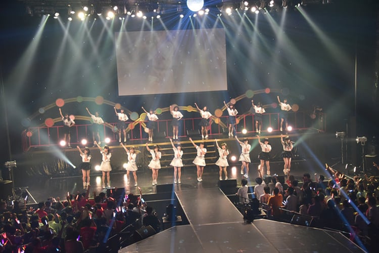 戴冠式のあとは、舞花がソロ曲であるバラードナンバー「On the way to dream」を熱唱。曲の終わりに彼女が「ハッピーバースデートゥーユー」を口ずさむと、カラフルなスカートが印象的な衣装に身を包んだメンバーは放プリユースを従えて「超 HAPPY BIRTHDAY」を披露し、会場に風船が舞う中ファンと共に10月12日に27歳の誕生日を迎えた木月を祝福した。そして7人はコール&レスポンスを交えながら「ふるてんLOVE&ROLL」「Smile×3~笑顔ずっと咲いたままで~」「FORZA! OLE!」といったナンバーをノンストップで畳みかけたのち、「秘密のティアラとジェラート」をライブ本編のラストナンバーとして歌唱。彼女たちが曲中にエレガントなドレス衣装に早着替えすると、場内は大きな歓声で包まれた。