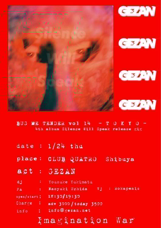 GEZANが2019年1月24日に東京・渋谷CLUB QUATTROでワンマンライブ「BUG ME TENDER vol.14 -東京-」を行う。