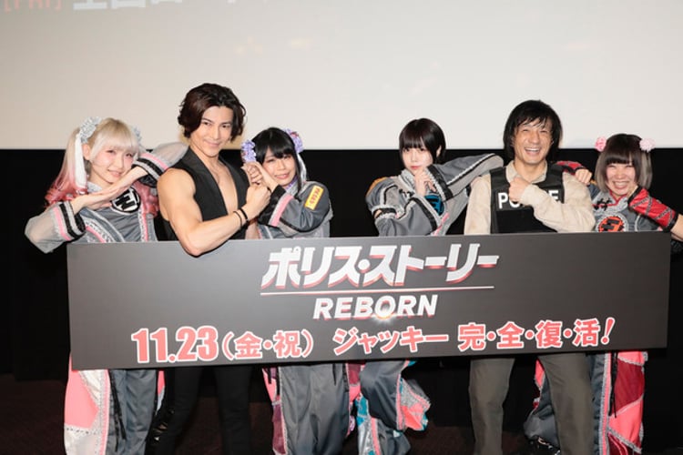ジャッキー・チェンが製作総指揮と主演を務めた「ポリス・ストーリー/REBORN」が11月23日より劇場公開されたことを記念し、昨日11月22日に東京・TOHOシネマズ新宿で前夜祭イベントが開催された。イベントにはジャッキー好きで知られる武田真治、ものまね芸人・ジャッキーちゃん、ジャッキーをモチーフにした新曲「ネバギバ酔拳」が話題のゆるめるモ!が登壇した。