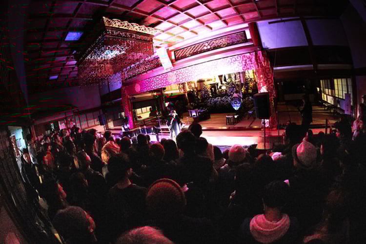 「MAZEUM」はそんな京都で、町中の寺やクラブを舞台にして開催された。初日である11月30日は、左京区は哲学の道の近くにある法然院という、谷崎潤一郎の墓もあることで知られる名刹と、京都きっての老舗クラブであるMETROが会場。2日目の12月1日は極楽寺、誓願寺、UrBANGUILD、OCTAVEという、いずれも繁華街ど真ん中にある4カ所が舞台となった。2日目の日中はこの4会場を使ってサーキット形式で行われた。