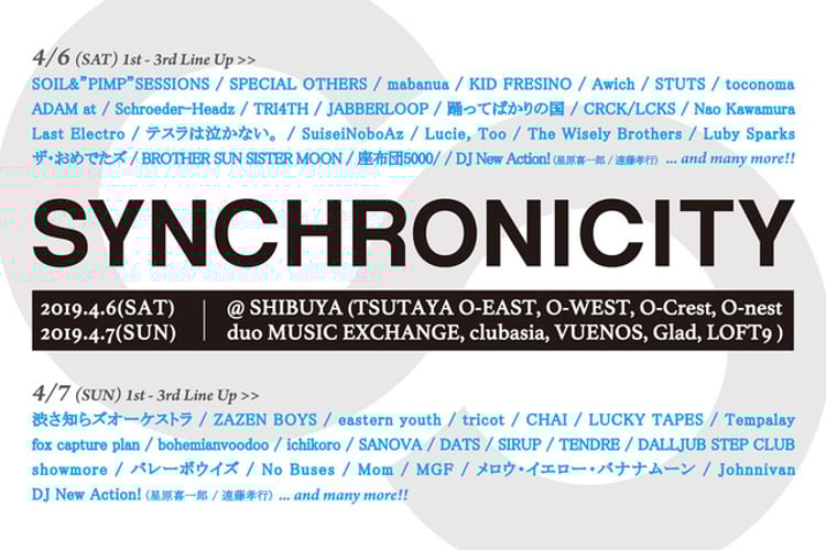 4月6、7日に東京・渋谷道玄坂エリアで行われるサーキットイベント「SYNCHRONICITY'19」の出演アーティスト第3弾が発表された。