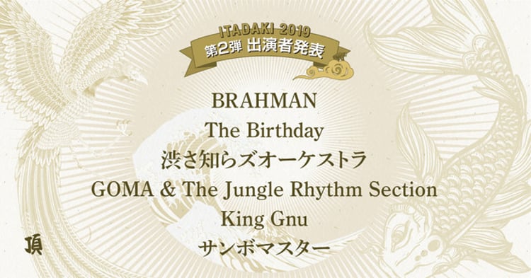 BRAHMAN / The Birthday / 渋さ知らズオーケストラ / GOMA & The Jungle Rhythm Section / King Gnu / サンボマスター / ORIGINAL LOVE / never young beach / スカート / Rickie-G feat. PJ / D.A.N. / SPECIAL OTHERS / and more