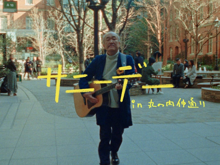 この動画は三菱地所株式会社が自社の事業やブランドスローガン「人を、想う力。街を、想う力。」に込めた思いを訴求するために制作したもので、ギターを手にした温水洋一が「サニーデー」を口ずさみながら東京・丸の内仲通りを歩く様子が映し出されている。