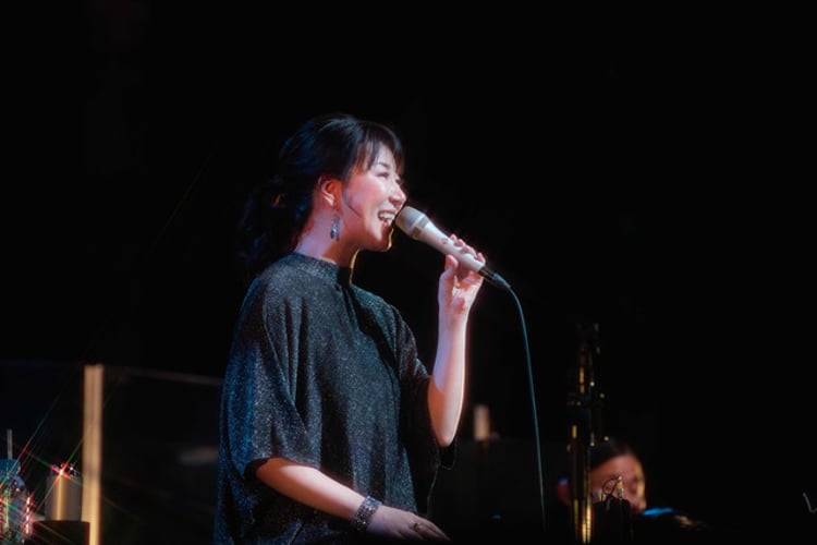 幻想的な雰囲気が場内に広がっていった「チャイナタウンの朝」、畠山の地元である宮城・気仙沼への思いが込められた「わが美しき故郷よ」を経てライブは後半へ。ここからは、ceroの高城晶平が歌詞を提供したポップチューン「BLINK」、KIRINJIの堀込高樹の作詞作曲による妖艶な「口唇には歌を」、いきものがかりの水野良樹が手がけた王道のラブソング「愛はただここにある」といった多彩なアーティストとのコラボ楽曲が披露されていった。そして、畠山は「会いに行く」をしっとりと歌いライブ本編を終えた。