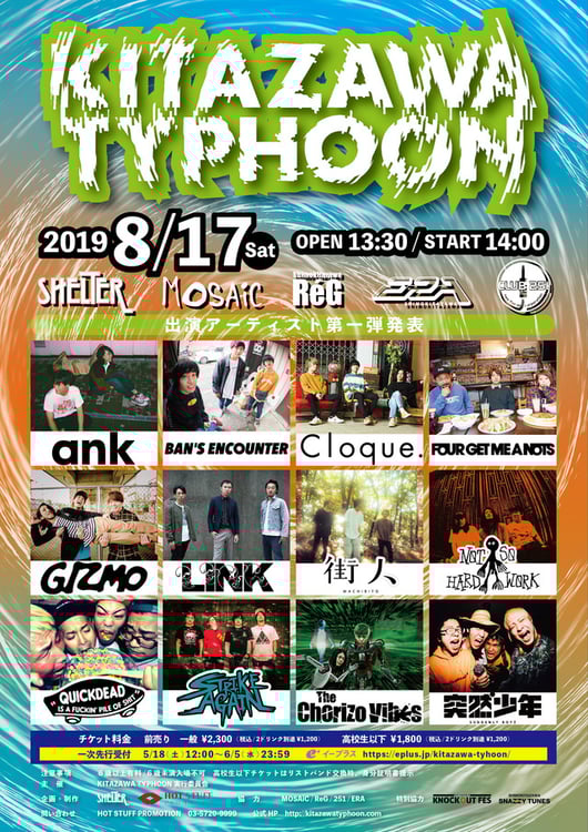 「KITAZAWA TYPHOON」が開催されるのは2016年10月以来、およそ3年ぶりとなる。開催決定と共に第1弾アーティストが発表され、ank、BAN'S ENCOUNTER、Cloque.、FOUR GET ME A NOTS、GIZMO、LINK、街人、NOT SO HARD WORK、QUICKDEAD、STRIKE AGAIN、The Chorizo Vibes、突然少年の出演が決定した。なお今年は下北沢SHELTER、下北沢ERA、下北沢MOSAiC、下北沢ReG、下北沢CLUB251の5会場でライブが行われる。