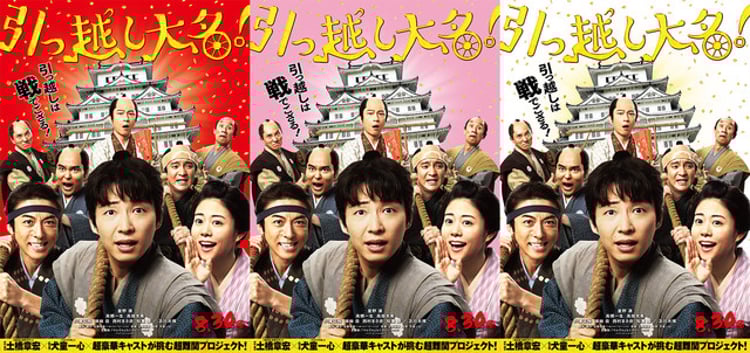 メインビジュアルには星野、高橋、小澤征悦、濱田岳、西村まさ彦、松重豊ら演じる姫路藩士が綱で城を引っ張る姿が収められている。ビジュアルは赤、ピンク、白と背景色が異なる3パターンが用意された。映画の公式Twitterアカウントでは投票企画が行われ、1位になったものが映画のポスターとして採用される。