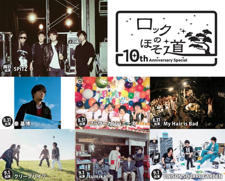 10周年記念公演となる今年の「ロックのほそ道」には、31日公演に秦基博、フラワーカンパニーズ、My Hair is Bad、1日公演にクリープハイプ、sumika、UNISON SQUARE GARDENが出演。イベントのオフィシャルサイトでは、6月9日までチケットの先行予約を受け付けている。一般発売は7月27日10:00にスタート。