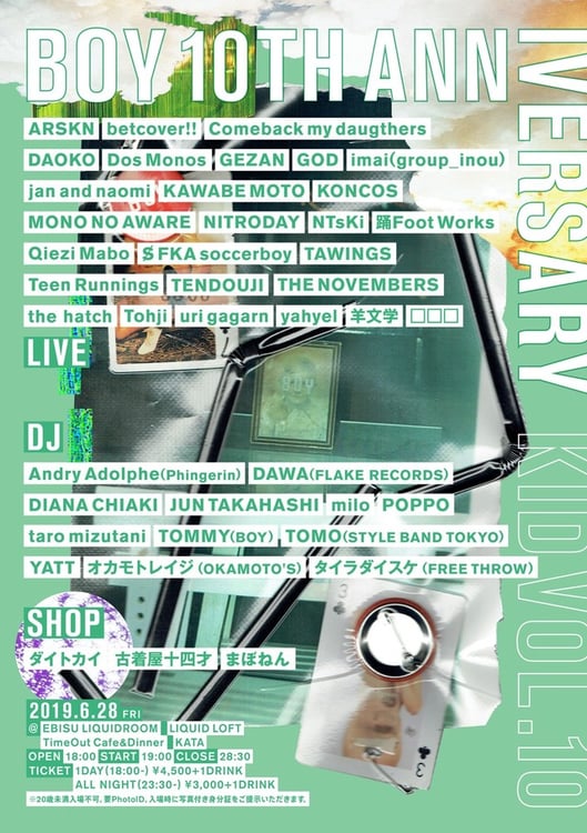 6月28日に東京・LIQUIDROOMで行われるライブイベント「BOY 10TH ANNIVERSARY / KID vol.10」の追加出演者が発表された。