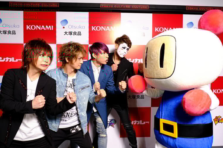 「ボンカレーゴールド」と「スーパーボンバーマン R」のコラボは、昨年誕生50周年を迎えた「ボンカレー」をより幅広い層に訴求すべく企画されたもの。この一環で全30種類のコラボパッケージが制作された。今回ゴールデンボンバーは、バンド名に2つの商品名にある「ボン」が含まれていることにちなんで広報大使に選出された。