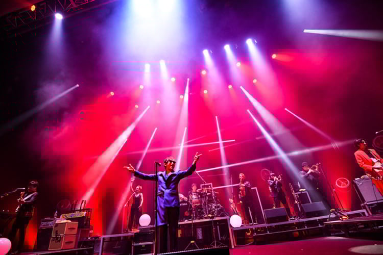 ライブの中盤のブロックは、「am 5:00」をはじめ穏やかなトーンの曲が続く構成に。「深夜、国道沿いにて」を歌う前にスガは亡き父親との思い出を語り、幼い頃の思い出を歌詞に描いた同曲を切々と歌い上げた。曲の余韻がほんのり残る中で、スガは「あんなこと、男の人みんなしたりするの?」からファンクモードにスイッチ。スガの歌声と共に、FIRE HORNSのダイナミックなアンサンブル、エネルギッシュなバンドサウンド、Maya Hatch(Cho)の艶のあるコーラスが響き、会場は熱気を帯びていく。そして、Fuyu(Dr)のドラムソロを経てライブ本編は「コノユビトマレ」でクライマックスへ。観客は体を揺らしながら、スガの清涼感たっぷりの歌声とグルーヴィなサウンドの妙を楽しんだ。