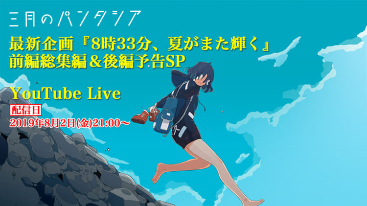三月のパンタシアがプロジェクト「ガールズブルー」の最新作「8時33分、夏がまた輝く」前編を振り返る番組を8月2日(金)21:00よりYouTubeで生配信する。