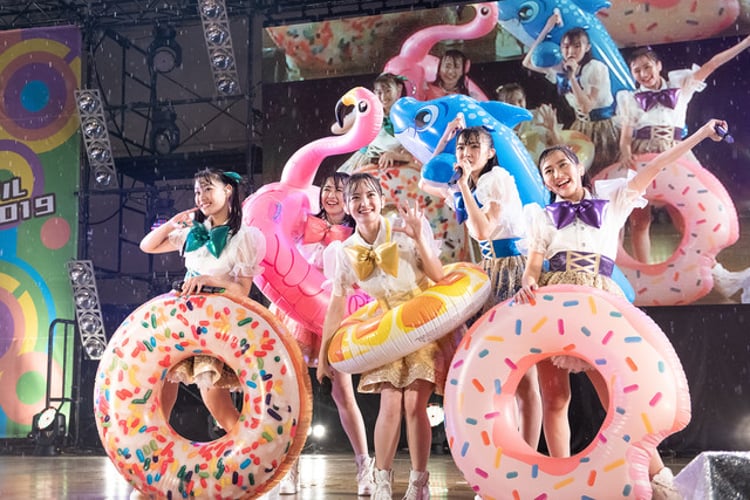アンコールを受けて再度ステージに上がったたこ虹は、地元愛のつまったナンバー「たのしかしまし大阪~おいでやす~」を披露した。続く「SuperSpark」ではメンバー5人が白いペンライトを光らせ、客席も白いペンライト一色に。照明に照らされる雨とペンライトの光が美しい光景を作り出した。5人はここでスクリーン映像を使い、ワンマンライブ「なんわンダーランド2019」を12月15日に東京・中野サンプラザホールで行うこと、実際にゲストを招いて行うたこ虹主催のアイドルイベント「西日本アイドルフェスティバル2019」を大晦日に開催すること、そして10月23日にメジャー5枚目となるニューシングル(タイトル未定)をリリースすることを発表した。うれしい報告の連続に大きな歓声が上がる中、5人はこの日の共演者たちを呼び込み、最後にもう1曲「RAINBOW ~私は私やねんから~」をパフォーマンス。司会の石田は、日本中でこの日この時間に大阪だけ雨が降っていたことを指摘し、「『No Rain, No Rainbow』です。雨がないと虹が見れません。あなたたち、大正解でございます」と悪天候の中およそ2時間半のステージを笑顔でこなしたたこ虹の5人を讃えた。