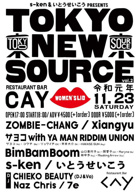 1986年から88年にかけて行われていたイベント「TOKYO SOY SOURCE」の“21世紀版”として、今年6月に初開催された「TokyoNewSource」。“women's lib”というサブタイトルが付けられた第2回には、イベントのキュレーターを務めるs-kenといとうせいこうのほか、ZOMBIE-CHANG、BimBamBoom、xiangyuや、高橋サヨコ(サヨコオトナラ、ex. ZELDA)率いるユニット・サヨコ with YA MAN RIDDIM UNIONらが出演する。