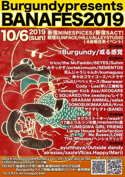 10月6日に東京・新宿エリアの4会場でBurgundy主催のサーキットイベント「Burgundy presents BANAFES2019」が開催される。