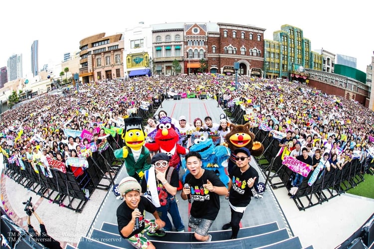 ライブの後半では「セサミストリート」のエルモ、クッキーモンスター、アーニー、バートといった人気キャラクターがダンサーとして登場。USJライブならではのコラボレーションで集まったファンを楽しませた。