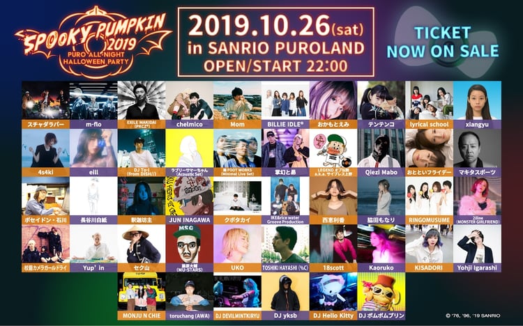 10月26日に東京・サンリオピューロランドで開催されるオールナイトイベント「SPOOKY PUMPKIN 2019 ~PURO ALL NIGHT HALLOWEEN PARTY~」の全出演アーティストが決定した。