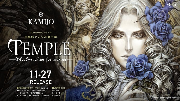 KAMIJOが11月27日にニューシングル「TEMPLE -Blood sucking for praying-」をリリースする。