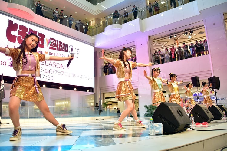 ときめき▽宣伝部が昨日10月10日に東京・池袋サンシャインシティ噴水広場でニューシングル「恋のシェイプアップ▽」のリリース記念イベントを行った。
