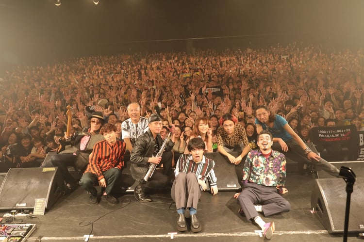 アンコールでは2組のコラボステージが用意され、まずはOKAMOTO'Sとイマサが「Hole」を披露。「OKAMOTO'Sの5人目のメンバーになります!」と気合十分に語ったイマサはコウキと熱いギターセッションを繰り広げ、合間には2人で笑みを浮かべる場面もあった。さらに「あなたにアディクション」では杏子の力強いボーカル、KONTAのテクニカルなサックスも加わり、観客たちのテンションをより高めていた。そして全員参加となった「C'm'on Let's go!」では各楽器別のソロパートを挟み、最後はKONTA、杏子、ショウが熱くシャウト。互いの“RESPECT”に満ちたパフォーマンスでフィナーレを彩った。
