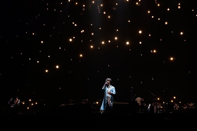 ステージを覆う紗幕にオープニングムービーが上映され、大きく「ワンダフル ワンダラス」というライブタイトルが映し出されると、ステージ中央にはそらるの姿が。幕が上がり、「来たぞ幕張!」と声を上げたそらるは、バックバンドとオーケストラの演奏をバックに「銀の祈誓」を歌い、ライブをスタートさせた。そらるのイメージカラーである青色のペンライトの色が会場を埋め尽くす中、そらるは「みんな、最高の景色だよ」とひと言。「群青のムジカ」を歌いながらステージの端まで歩いていき、フロアを見渡しながら透き通った歌声を届けていた。