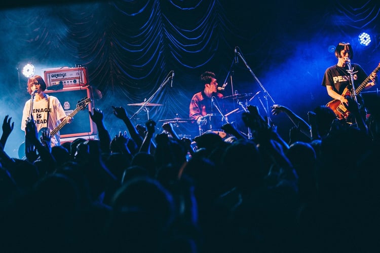 PEDROのライブは田渕ひさ子のギラついたギターサウンドが映える「STUPID HERO」で幕開け。アユニ・D(Vo, B)は気だるくも時折がなるように歌声を響かせる。PEDROは疾走感のあるナンバー「GALILEO」でフロアのモッシュを誘い、メランコリックなテイストの「ボケナス青春」につなげた。「PEDROです、よろしくどうぞ」というアユニの短い挨拶を挟み、PEDROはアユニと毛利匠太(Dr)のずっしりとしたリズム隊の演奏、田渕の軽快なギターカッティングのコントラストが映える「甘くないトーキョー」、アグレッシブなロックチューン「MAD DANCE」と続けて演奏した。「PEDROです。スーパーギタリスト田渕ひさ子さん。そしてスーパードラマー毛利匠太」とアユニがメンバー紹介をしたあと、シャッフルビートのロックチューン「ハッピーに生きてくれ」でコール&レスポンスを巻き起こしたPEDRO。アユニが憂いのある表情を浮かべつつ「おちこぼれブルース」をエモーショナルに歌い上げ、「NIGHT NIGHT」でキネマ倶楽部を揺らした。