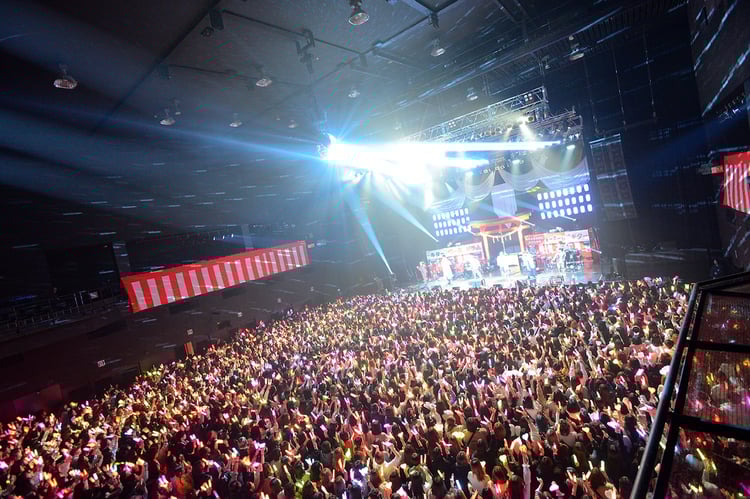 大きな鳥居や屋台がステージに設置され、お正月ムードであふれるZepp Tokyoに和テイストのSEが流れると「あけましておめでとうございます!」の言葉と共にあらき、nqrse、めいちゃんが登場。バンドを従えた3人は「神のまにまに」で華やかにライブの幕を開け、それぞれの個性あふれる歌声を会場いっぱいに響かせた。オープニングのMCでは、当日1月13日が誕生日のnqrseとめいちゃんが前晩カラオケ店で一緒に誕生日を迎えた瞬間を振り返る。2人がバースデーソングを歌おうとすると、カラオケのモニターにはRoyal ScandalのCMが流れ、この日のゲストであるluzが2人を祝うかのように現れたのだという。3人のゆるいトークにより和やかなムードが生まれる中、nqrseが一旦退場すると、あらきとめいちゃんは「カンケイナイトファンキー」でパフォーマンスを再開。その後ステージには3人が入れ替わり立ち替わりで現れ、ソロやデュエットで会場をどんどんヒートアップさせていった。