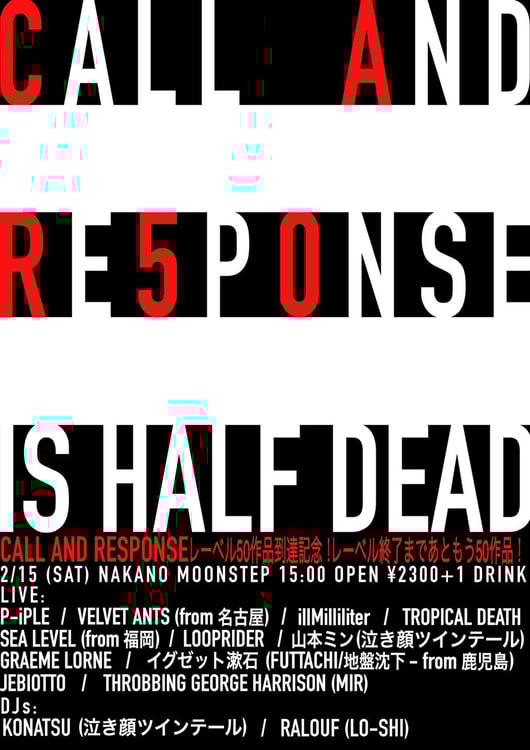 Call And Responseは本日2月15日に東京・中野MOONSTEPで主催企画「Call And Response is Half Dead」を開催し、このイベントからコンピレーションの販売を開始する。今後は一部店舗でも取り扱いが開始される予定だ。