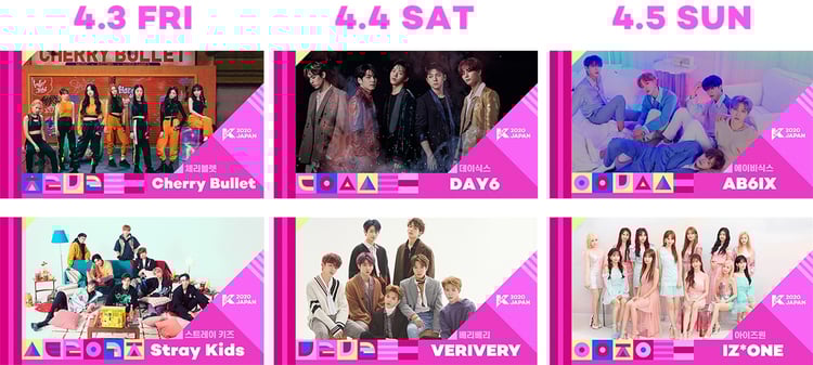 今回追加されたのは3日出演のCherry Bullet、Stray Kidsと4日出演のDAY6、VERIVERY、5日出演のAB6IX、IZ*ONEの合計6組。DAY6、VERIVERY、AB6IXはミート&グリートへの参加も予定されている。