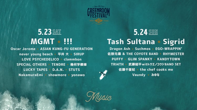 5月23、24日に神奈川・横浜赤レンガ地区野外特設会場で開催されるサーフカルチャーフェスティバル「GREENROOM FESTIVAL'20」の追加出演アーティストが発表された。
