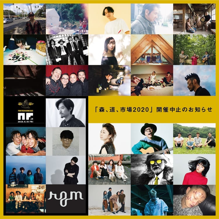 イベントの中止は新型コロナウイルス感染拡大の状況を受けて、来場者、出演者、関係者の安全を最優先するため決定した。チケット代金については、払い戻しまたは「森、道、市場 2020」に携わる“パートナー”への寄付いずれかを選ぶことができる。