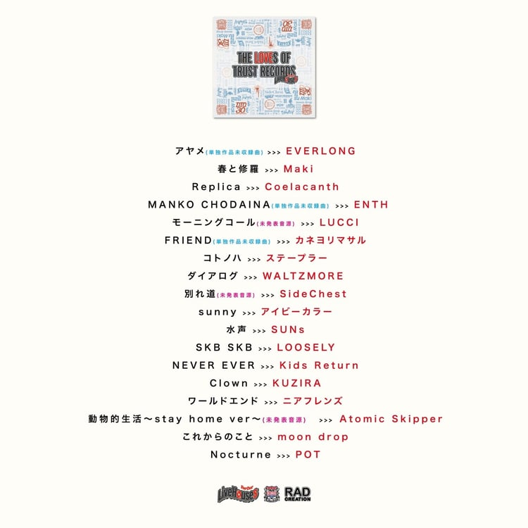 V.A. 「V.A THE LOVES OF TRUST RECORDS -For Our Live Houses-」収録曲 / アーティスト