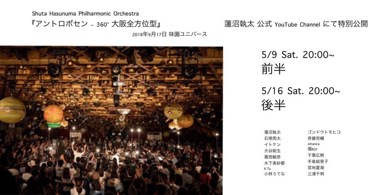 蓮沼執太フィルのライブ「アントロポセン - 360° 大阪全方位型」全編の映像が、明日5月9日と16日の2週にわたりYouTubeでプレミア公開される。