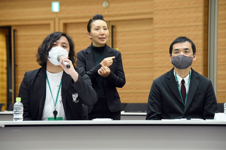 続けて要望書を執筆した詩森が国会議員との折衝の結果を報告。国が創設を進めているという民間企業や個人からの寄付を原資とする復興基金では不十分だと指摘しつつ、「いろいろなことが少しずつ進んでいるという印象を持ちました」「30人以上の議員さんが来てくださいました。そして文化は必要であるという熱い演説をいただきました」と手応えを語った。さらに詩森は「日本は世界的に豊かな国ではあるんですけど、それを非常に小さな経済帯の文化人たちが支えているんです。自分たちの仕事が公共を担っているものだという自負が大きいと思います。文化は他者を理解する心や日頃知らない世界を知るための手段です」「瞬発力のある経済支援を急ぎ構築する必要があると思います。文化の蓄積はなくならないとわからない、非常に可視化しづらいもので、一朝一夕では作れないものなんです」と基調報告を続けた。