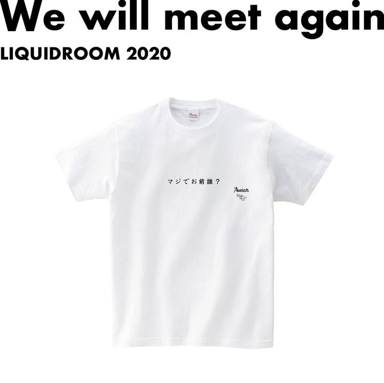 このドネーションTシャツは、新型コロナウィルス感染拡大防止のため営業を自粛しているLIQUIDROOMが立ち上げたプロジェクト「We will meet again」の一環で制作されたもの。今回販売されるTシャツには、2017年8月発売のアルバム「8」の収録曲「WHORU? feat. ANARCHY」の歌詞の一部である「マジでお前誰?」という文字がプリントされている。