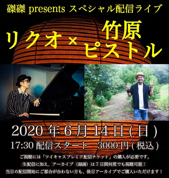竹原ピストルはこの企画についてTwitterで「磔磔で。リクオさんと。ダブルで嬉しいこの機会。全力で頑張りますのでどうぞご覧下さい!!」とコメント。このツイートに対してリクオは「ピストル君、14日(日)磔磔でのジョイント配信ライブ、とっても楽しみにしてます。特別な夜にしましょう」と引用リツイートしている。