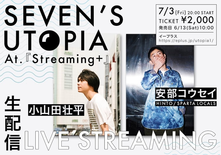 「SEVEN'S UTOPIA」は、イベント制作会社・SEVEN'S SOFTHOUSEが主催するライブストリーミング企画。第1回となる今回は安部コウセイ(SPARTA LOCALS、HINTO)と小山田壮平(AL、ex. andymori)が出演し、弾き語りでのパフォーマンスを披露する。なお安部と小山田が競演するのは、2014年8月に千葉・千葉LOOKで開催されたHINTOとandymoriのツーマンライブ「千葉LOOK presents 大感謝祭リターンズ~真夏の2man」以来で約6年ぶりとなる。