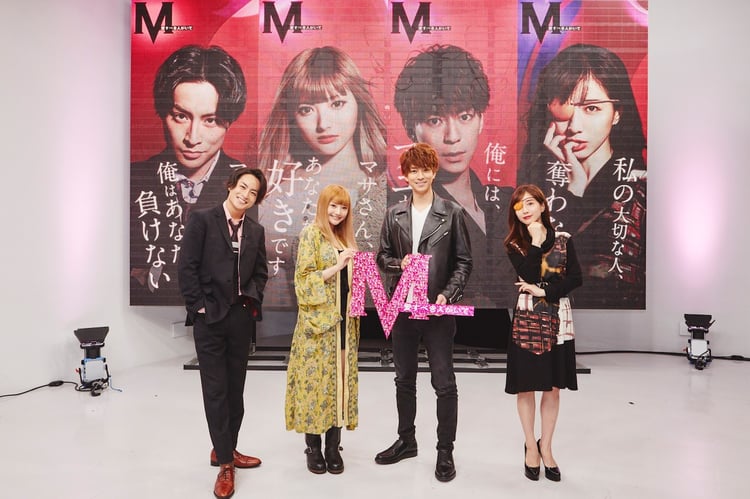 「M 愛すべき人がいて」は浜崎あゆみの告白小説を原作に、のちに“平成の歌姫”と呼ばれる女性・アユの物語を描いたドラマ。新型コロナウイルス感染拡大の影響により放送が中断していたが、第4話の放送が決定したことを記念してリモート会見が開かれた。登壇者たちは広いスタジオ内にソーシャルディスタンスの距離を保って登場。放送にかける意気込みやSNSを中心に話題沸騰中の本作について和気あいあいと語った。
