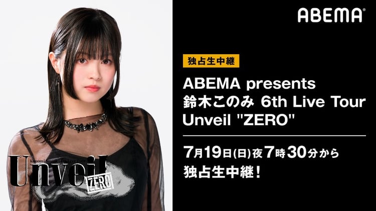鈴木このみが7月19日19:30から有料配信制の無観客ライブ「ABEMA presents 鈴木このみ 6th Live Tour ~Unveil “ZERO”~」を行う。