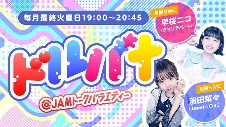 6月30日(火)にSHOWROOMにて新番組「@JAMトークバラエティー“ドルバナ”」の配信がスタートする。