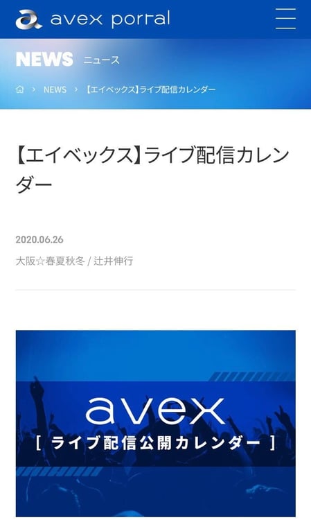エイベックス・エンタテインメントが、所属アーティストのライブ配信スケジュールを共有するカレンダーをポータルサイト「avex portal」内に公開した。