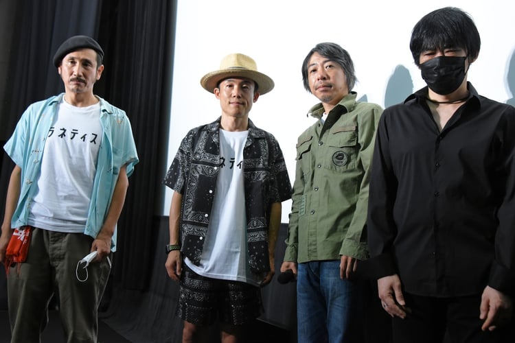 本日7月11日公開の映画「プラネティスト」の初日舞台挨拶が東京・ユーロスペースで行われ、出演者の渋川清彦、GOMA、ヤマジカズヒデ(dip)、監督の豊田利晃が登壇した。