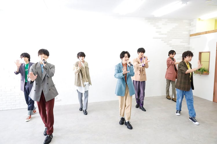 2曲を終えると生配信に切り替わり、「シェイクスピアに学ぶ恋愛定理」の新衣装を着たメンバーは元気いっぱいに自己紹介をした。武藤潤が「生で自分たちの姿を見てもらうのはひさしぶり」と言ったように、彼らがパフォーマンスを披露したのは1月のフリーライブ以来、約半年ぶり。編集が施された映像はメンバー自身も初見だったといい、大倉空人は「アニメの自分たちがイケメンすぎたよね?」とうれしそうにメンバーに語りかけた。また、1人リモートでのトークパート参加となった小泉光咲はパフォーマンスパートの収録を振り返り「約半年ぶりっていうのもあって、謎の緊張感があったよね(笑)。最終的にうまくできたから、よかったと思います」と語っていた。