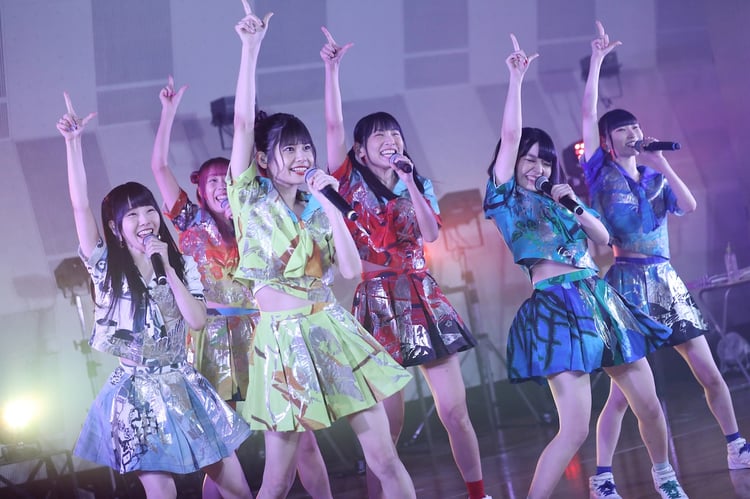 再び待機画面に戻り、10分ほど経過してオープニング映像がスタート。夜空に打ち上がる花火の映像がフェードアウトすると、画面にはスタジオでスタンバイする古川未鈴、相沢梨紗、成瀬瑛美、藤咲彩音、鹿目凛、根本凪の姿が現れる。そして生バンドの音が鳴り響き、「プレシャスサマー!」で“夏祭り”が開幕。1曲目から無観客ライブとは思えない熱気を画面越しに届ける。画面の4隅にはワイプが用意されており、そこにはバンドメンバーの演奏風景が映し出される。その後、彼女たちは「でんぱれーどJAPAN」「NEO JAPONISM」を立て続けに披露。メンバーはカメラに向けて手を振ったり、指ハートを作ったりするなど、思い思いのパフォーマンスを視聴者に届けた。