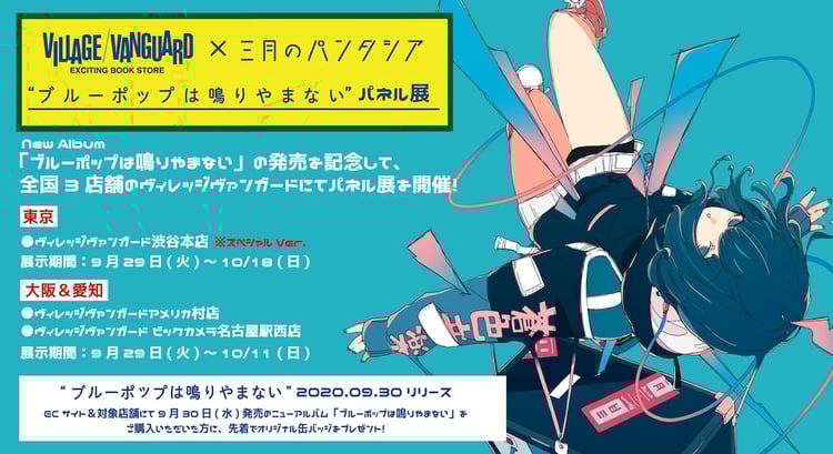 三月のパンタシアのパネル展が明日9月29日から東名阪のヴィレッジヴァンガード3店舗にて開催される。